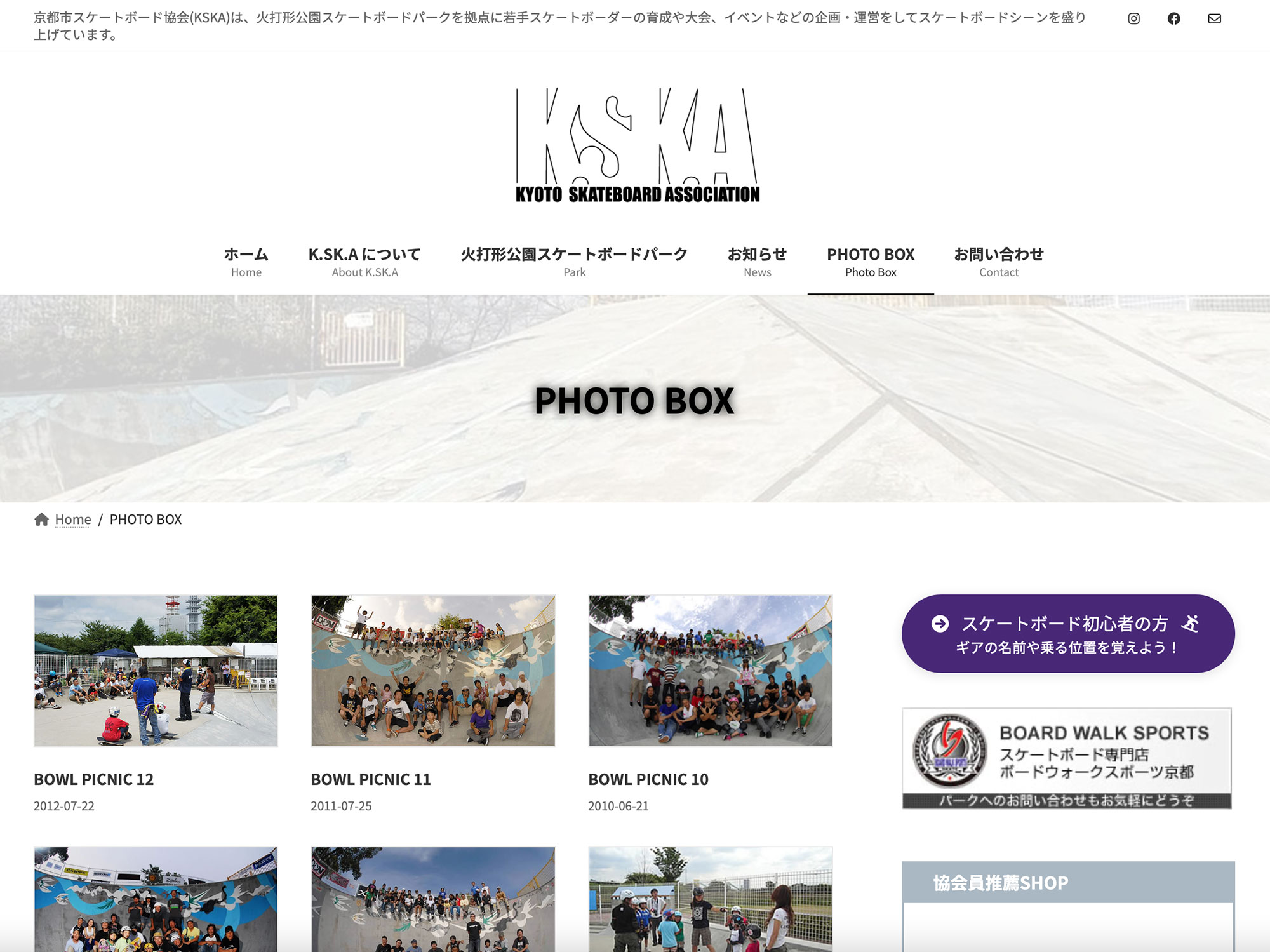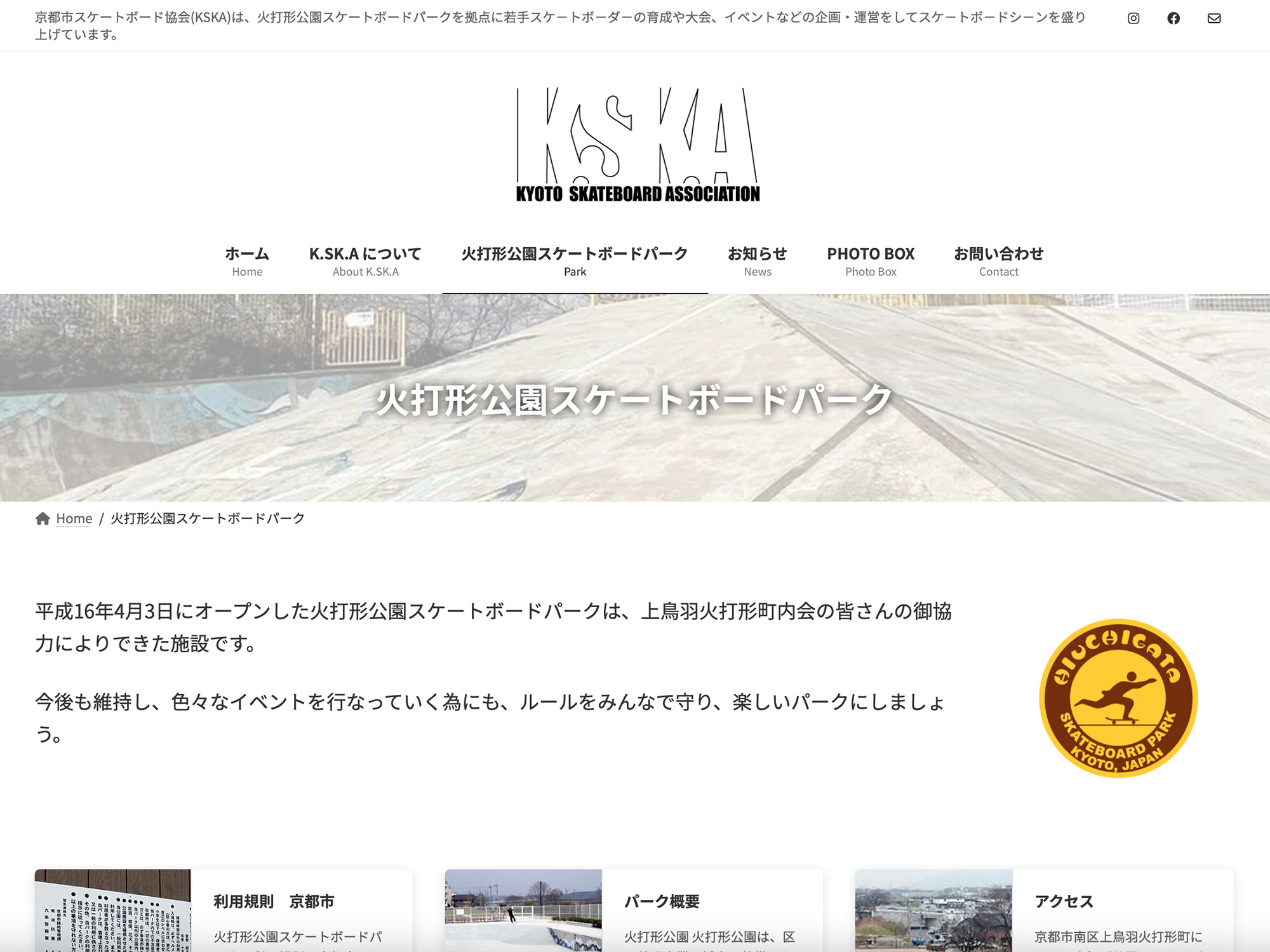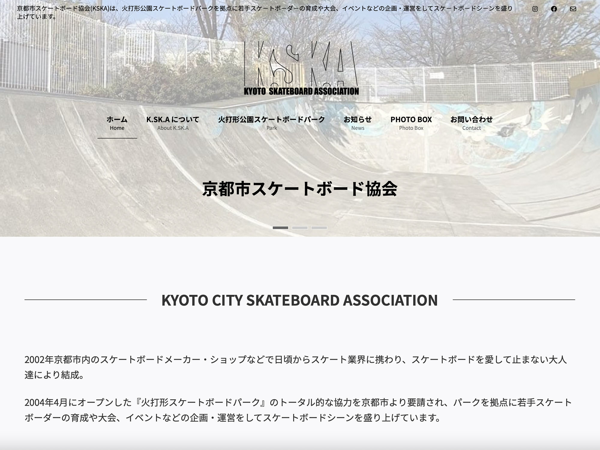 京都市スケートボード協会様 2022-04-02 最終更新日時 : 2025-10-27 feelgood スマホ対応をご希望で、WordPressにてリニューアル制作を行いました。 リニューアル WordPress レスポンシブデザイン www.kska.net 京都市スケートボード協会 火打形公園スケートボードパークを拠点に若手スケ-トボ-ダ-の育成や大会、イベントなどの企画・運営をしてスケ-トボ-ドシ-ンを盛り上げている京都市スケートボード協会(K.SK.A)オフィシャルサイト。